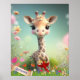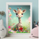 Poster Girafa Fofa no Jardim Arte Personalizada Quarto de