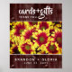 Adicione um toque de charme de vintagem à sua recepção de casamento com este cartaz de casamento de temas florais, que permite aos hóspedes saber onde colocar presentes e cartões para os recém-casados. Apresenta uma medalha de queda de mini girassóis vívidos, de dois tons, colocados em uma cerca de tempo. Personalize com os nomes dos recém-casados e a data do casamento. Um excelente para os temas de casamento no outono e no rusticário! Design © W.H. Sim, Todos os Direitos Reservados. Mais informações em zazzle.com/expressionsoccasions