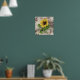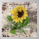 Poster de um girassol amarelo ao quadrado de madeira rústica com efêmera.