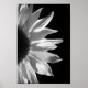 Foto linda de meio girassol em preto e branco com luz brilhando pelas pétalas. Como Flores?