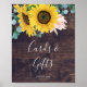 Este letreiro de madeira rústica com girassóis para cartões e presentes é perfeito para um casamento campestre ou chá de noiva. O design floral boêmio apresenta girassóis amarelos, flores rosa e folhagem de eucalipto verde caçador em aquarela com um visual moderno e elegante de boho. A linha de texto na parte inferior do letreiro pode ser personalizada com a data, os nomes da noiva e do noivo, ou uma mensagem curta como "Obrigado". Este letreiro pode ser usado para um casamento ou qualquer evento ou festa.