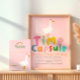 Este sinal de cápsula desta vez explica que os convidados de festa que compareçam à primeira festa de aniversário rosa de um ganso de bobo podem escrever uma nota para o seu filho abrir no seu 18º aniversário. Cartões correspondentes para os convidados a escrever podem ser encontrados na nossa coleção. Certifique-se de que editou o texto conforme necessário, para incluir o nome de suas garotas.