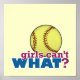Os lançadores, os apanhadores, os atalhos e os jogadores de bola de todas as idades vão adorar este design de softball. Quem disse que as garotas não podem jogar softball? Meninas não sabem o quê?