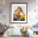 Girly rabbit with big puppy dog eyes and pink floppy ears in a field of sunflowers