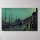 O rio Clyde flui sob um céu iluminado, a sua superfície brilhando com reflexões das luzes gasosas e o brilho suave do sol. Ao longo das docas, naves e navios a vapor masturbados descansam calmamente na água, suas silhuetas escuras e graciosas contra a luz da noite. Uma sutil névoa desfoca os contornos de armazéns e chaminés, evocando a calma firmeza da Escócia industrial ao anoitecer. O clima é melancólico e pacífico, capturando um momento de transição entre o silêncio natural e a indústria humana.