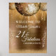 Avise aos seus hóspedes que eles chegaram com este poster de Celebração de Ouro 21 e Fabuloso com bolas de disco de ouro brilhando sobre um fundo metálico escovado de ouro com galerias de festas e reluz de ouro. É fácil personalizar com opções personalizadas. Use o botão 'Personalizar' para personalizar o produto ou adicionar texto.
