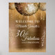 Avise aos seus hóspedes que chegaram com este poster de Celebração 30 de ouro e fabuloso com bolas de disco de ouro brilhando sobre um fundo metálico escovado de ouro com galerias de festas e reluz de ouro. É fácil personalizar com opções personalizadas. Use o botão 'Personalizar' para personalizar o produto ou adicionar texto.