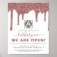 O Rosa de chip Dourado Sparkle Glitter Drips O Poster de Sinal de Abertura de Negócios com nossa tendência faux glitter goteja em branco rosa/rosa e seu nome, nome comercial ou logotipo. Perfeito para anunciar sua abertura, reabertura, ou apenas para mostrar sua estética de luxo. Você está pingando no luxo, então seu equipamento deveria estar também! Entre em contato conosco em cedarandstring@gmail.com se precisar de assistência com o design ou produtos correspondentes.