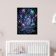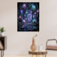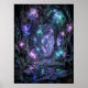 A mesmerizing crystal cave illuminated by glowing gemstones in vibrant shades of purple and blue. Light reflects across the rocky surfaces and flowing water, creating a magical and immersive atmosphere. This fantasy artwork captures the beauty of hidden worlds and mystical landscapes, perfect for adding a dreamy and enchanting touch to modern interiors, gaming rooms, or creative spaces.