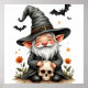 Adorável adesivo de gnomo de Halloween, caneca, almofada, pôster e camiseta com uma simpática bruxa gnomo segurando uma caveira. Perfeito para adicionar um toque assustador à sua casa ou guarda-roupa.