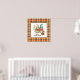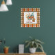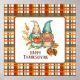 Bonita arte de muro de Ação de Graças apresenta um par de gnomos segurando abóbora e torta com fundo de xadrez de outono