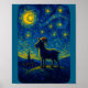 Poster Goat Lover Santa Hat Christmas Starry Cute Night V