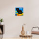 Poster com um gato Van Gogh no estilo da Noite Estrelada! Um gatinho negro e fofo permeia uma mesa contra um céu azul e uma lua amarela. Um presente perfeito para amantes de gatos e colecionadores de arte holandeses!