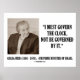 Não é preciso ser líder de um país para entender que todos nós nos governamos controlando o que fazemos com o nosso tempo. Mostre este fato com esta poster inteligente de citação que traz palavras de sabedoria de Golda Meir, o 4º Primeiro Ministro de Israel, que disse uma vez: "Eu devo governar o relógio, não ser governado por ele."