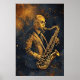 A moving work of art that captures the soul of a master saxophonist. In a stunning contrast of black and gold, the experience and passion of a veteran musician come to life. Dynamic brushstrokes and rich texture create an atmosphere of sophistication and nostalgia. A piece of impact that celebrates the timelessness of music and talent.
