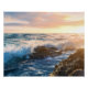 Póster Golden Hour Ocean Waves Crashing on Rocks Sunset