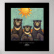 Três ursos de sol. Mãe, Pai, Criança, com boneca.
