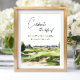 This Celebration of Life welcome poster features a beautiful watercolor golf course and is perfect when welcoming guests to a gathering for a beloved golfer. Available as a printed poster or a digital download that can be printed locally.