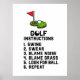 Instrução Golf Swing Swear no buraco da bandeira na Etiqueta de Bagagem Verde 1. Swing 2. Juro 3. Ruído da culpa 4. Culpa Grass 5. Procure Ball 6. Repetir