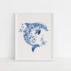 Poster Golfinho Floral - Azul Costeiro na Arte de Parede