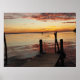 Poster de golfinhos sunset. Um par de golfinhos nadando perto de uma doca durante um pôr do sol romântico.