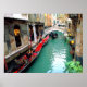 Lindas gondolas flutuando pacificamente num pequeno canal veneziano.