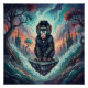 Um babuíno branco senta-se sobre uma rocha flutuante, adornada com acessórios góticos e rodeado por nuvens giratórias e torres estranhas de castelos. Esta ilustração surreal combina fantasia, natureza, e encanto gótico, perfeito para amantes de criaturas mágicas e paisagens sonoras. Ideal para impressões, presentes e decoração que despertam curiosidade e conversa. AI