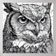 A highly detailed Stained-Glass Sketch capturing the intensity of a majestic Owl Portrait. Intricate black lines mimic traditional leading, segmenting the bird's feathers and features into a striking geometric pattern. Perfect as a high-contrast piece of apparel or a print-your-own coloring page for nature lovers.