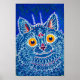 Poster com a pintura animal de Louis Wain A Cat in Gothic Style (1860-1939). Um gato azul psíquico olha amigavelmente com os olhos amarelos para o espectador. Um presente maravilhoso para amantes de gatos e arte inglesa.