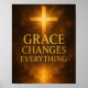 Bring a warm, reflective spirit into your space with this “Grace Changes Everything” Christian wall art design. Featuring a radiant cross, glowing golden light, dramatic clouds, and soaring birds, this piece creates a calm yet powerful visual reminder of faith, mercy, and renewal. The rich amber tones give it a timeless look that works beautifully in a living room, prayer room, church office, bedroom, hallway, or study.
