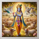 Poster Graceful Blue Pastoral Gopala Krishna Art Design