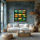 Este impressão de abstrato de arte impressionante apresenta uma grelha verde que mostra paisagens vibrantes do deserto. Cada seção apresenta uma interpretação geométrica única de cactos, colinas rolantes e flora desértica em tons ricos de verde, amarelo e laranja. As cores ousadas e o layout estruturado da grade trazem um talento artístico moderno a este design, fazer-o como a adição perfeita a qualquer espaço contemporâneo de casa ou escritório. Ideal para amantes da arte geométrica e abstrato, esta peça oferece uma representação impressionante da beleza da natureza através de linhas coloridas e limpas
