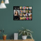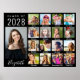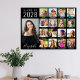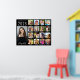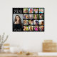 Cartaz de festa de formatura preto e lembrança com uma colagem de 17 fotos do formando ao longo de seus anos escolares e seu nome em um script branco elegante. Adicione suas legendas personalizadas sob cada foto.