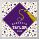 Graduação criativa felicita a poster, apresentando boné roxo com uma fita de ouro sobre fundo de confete. Para personalizar, edite o nome do formando de adição de texto e o ano de classe do mais velho.