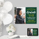 Adicione um toque personalizado a uma comemoração de faculdade ou segundo grau com uma foto verde, ouro e poster branco de 18"x24". Imagem e todo texto são simples de personalizar. Design apresenta um fundo verde ombre, boné conselho de argamassa amarela, tipografia moderna, caligrafia de na moda e uma foto do formando, como uma fotografia ou imagem do mais velho da cerimônia de início. Observe que o ouro é amarelo impresso, não é folha. Esta placa de festa de formatura é uma maneira elegante de celebrar o dia especial. Parabéns ao formando!