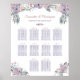 Lindos buquês florais de flor silvestre de aquarela em tons de lavanda, roxo, violeta, pêssego, pincel, azul empoeirado e verdes e acentuados com um texto de título de cobre para um quadro de assentos até 10 mesas e 12 convidados por mesa. Entre em contato com o designer se quiser que este design seja modificado ou em outro produto.