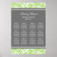 Gráfico de assentos de doze mesas elegante e contemporâneo para casamento em verde-maça brilhante moderno, cinzas e padrão clássico de damasco floral branco. Personalize com seu nome de hóspede para fazer um quadro único para seu casamento.