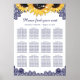 Completar seu país rústico, jardim, quintal ou festa de casamento de celeiro azul-marinho com este gráfico de assentos de chic azul para 12 mesas com flores de girassol e rendas florais. Itens correspondentes disponíveis.