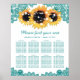 Complementem a sua festa de casamento rústica teal, jardim, quintal ou celeiro com este gráfico rústico de gengibes para oito mesas com flores de girassol, luzes de cordas e rendas florais. Itens correspondentes disponíveis.
