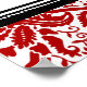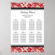 Gráfico de assentos de oito mesas elegante e contemporâneo, personalizável para o casamento em padrão clássico de damasco floral clássico, vermelho, preto e branco moderno. Personalize com seu nome de hóspede para fazer um quadro único para seu casamento. Entre em contato conosco para solicitar um gráfico personalizado para um número diferente de convidados.
