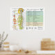 Imagem anatômica colorida mostrando o sistema nervoso autônomo em relação à coluna e aos órgãos internos. Nervos que representam o sistema simpático, parasimático e cerebral-espinal. A poster de quiroprática enumera os efeitos da subluxação da coluna nas áreas do corpo e os possíveis sintomas associados. Cor codificada pelo nível da coluna.