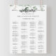 Este clássico assento alfabético de eucalipto é perfeito para um casamento rústico. A design apresenta lindas folhas verdes de eucalipto com aquarela. Este sinal pode ser usado para organizar seus convidados em ordem alfabética ou por número de tabela. Ele tem espaço suficiente para cerca de 150 convidados de casamento. Deixe espaço para mais (ou menos) clicando no botão personalizar e aumente ou diminua o tamanho da fonte. Personalize este sinal com os nomes da noiva e do noivo e a data.