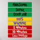 "O básico do sistema é este... * Há um pino de roupa para cada criança. * Todos os dias todos começam com "Bom Trabalho" (tábula rasa). * A criança move o clipe um espaço para cada boa ação. * Cada vez que o clipe bate "Incrível" eles têm um pom no vidro. * Somente a mãe ou o pai podem dizer à criança para mover o clipe para cima ou para baixo, e apenas a mãe ou o pai podem dar pom. * Se uma má escolha for feita, a criança move seu clipe para baixo para "oops", e para cada má escolha depois disso continua movendo-se para baixo e fazendo a consequência. Você pula os outros espaços verdes quando uma má escolha é feita, já que isso não seria "super" ou "bom trabalho". * Cada boa ação move-os para cima de um espaço (mesmo que eles não repetissem as consequências listadas na seção vermelha ao subir.... é apenas o conceito de voltar lentamente para cima, encorajando várias boas escolhas para o reforço.). * Se a qualquer momento eles se recusarem a mover seu próprio clipe, mãe ou pai o abaixa 2 espaços. * É um vermelho automático (5 minutos de folga) para machucar alguém intencionalmente (você pula as "oops" e o "aviso"). * Se uma criança estiver em qualquer espaço verde no final do dia, ela terá 5 pom no pote. * Quando o boião é cheio, a criança recebe a recompensa pré-escolhida (tratamento, prêmio, noite fora com mãe ou pai, etc.) * Os privilégios perdidos são 1- snacks, 2- amizade, 3- telas (TV, computador, telefone, etc.) * Se um privilégio for perdido antes das 17:00, eles perderes pelo resto do dia. Se for perdido depois das 17h, perde-se até à hora do almoço do dia seguinte. * Boas ações podem incluir: dizer "ok", seguir e verificar as coisas feitas pela mãe ou pai, usando boas maneiras, comendo toda a refeição (ou pelo menos boa parte das partes saudáveis), ouvir pela primeira vez, vestir-se ou escovar os dentes, fazer lição de casa ou outras tarefas. * Más ações podem incluir: lamentar, dizer NÃO, chorar (quando não dói), morder, bater, chutar, dizer coisas más, não compartilhar ou não concluir tarefas atribuídas." - De http://jessiepond.blogspot.com/2012/02/behavior-chart.html