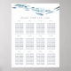 Nosso design de assentos de chic costeiro para casamentos de verão, festas de noivado ou jantas de ensaio apresenta uma escola de peixes de aquarela azul ao longo do topo. Personalize este gráfico de assentos com um cabeçalho personalizado e até 12 mesas convidadas em letras azuis marinhos elegantes para uma aparência moderna e mínima de praia. Disponível para impressão profissional ou como download digital para impressão local.