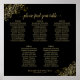 Esta carta de 5 mesas de casamento ajudará seus convidados a encontrar a mesa certa na sua recepção. O design é simples e elegante com texto dourado sobre fundo preto e filigre floral herdado nos cantos. O título diz "por favor encontre sua mesa" em uma caligrafia elegante. Sofisticado e chique. Inclui atribuições de mesa para 50 convidados com 10 lugares por mesa.