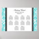 Gráfico de assentos de 10 mesas elegante e contemporâneo para o casamento no padrão clássico clássico de damasco floral azul e azul-turquesa moderno. Personalize com seu nome de hóspede para fazer um quadro único para seu casamento.