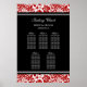 Gráfico de assentos de cinco mesas elegante e contemporâneo, personalizável para o casamento em padrão clássico de damasco floral clássico, vermelho, preto e branco moderno. Personalize com seu nome de hóspede para fazer um quadro único para seu casamento. Entre em contato conosco para obter um gráfico personalizado para um número diferente de convidados.