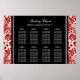 Gráfico de assentos de oito mesas elegante e contemporâneo, personalizável para o casamento em padrão clássico de damasco floral clássico, vermelho, preto e branco moderno. Personalize com seu nome de hóspede para fazer um quadro único para seu casamento. Entre em contato conosco para obter um gráfico personalizado para um número diferente de convidados.