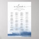 Este moderno poster de assentos alfabéticos azuis de cor aquática é perfeito para um casamento atual na moda. Este sinal pode ser usado para organizar seus convidados em ordem alfabética ou por número de tabela, alterando os nomes dos títulos. A coleção de design minimalista, clássica e elegante apresenta traços simples de pincel de cor de água em tons de joias bonito. Esta placa de casamento tem espaço suficiente para cerca de 120 convidados. Deixe espaço para mais (ou menos) convidados clicando no botão "personalizar" e diminuindo ou aumentando o tamanho da fonte. Além do posicionamento de cada convidado, personalize este cartaz com os nomes da noiva e do noivo e a data do casamento.