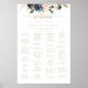 Este gráfico de assentos alfabéticos em ouro floral esboroado é perfeito para um casamento rústico. A design apresenta belas flores azuis escuras pintadas manualmente, azuis, marinhos, rosa, pinceladas, douradas e folhagem verde. Este sinal pode ser usado para organizar seus convidados em ordem alfabética ou por número de tabela. Ele tem espaço suficiente para cerca de 150 convidados de casamento. Deixe espaço para mais (ou menos) clicando no botão personalizar e aumente ou diminua o tamanho da fonte. Personalize este sinal com os nomes da noiva e do noivo e a data.